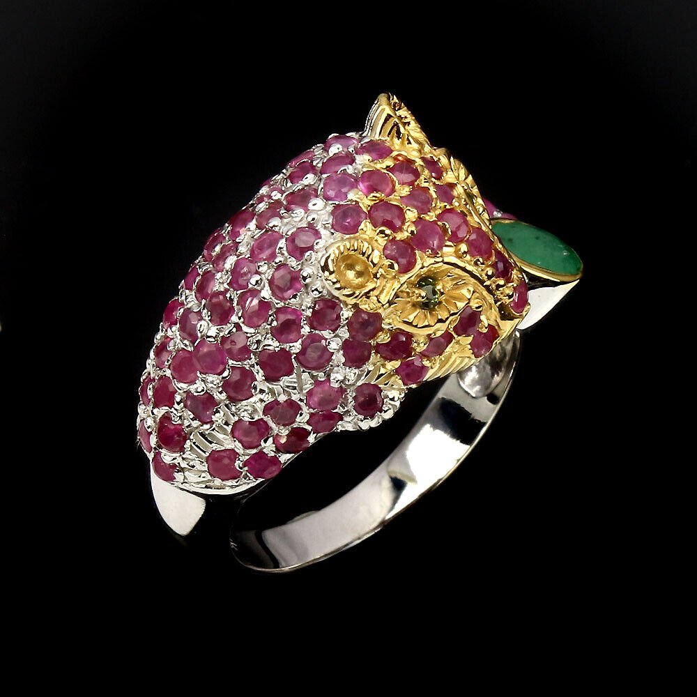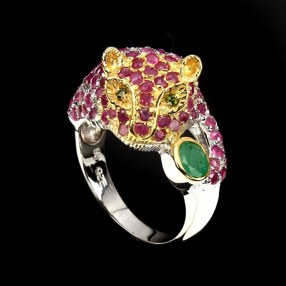 Emerald Ruby Russian Diopside Big Cat Ring Size 56