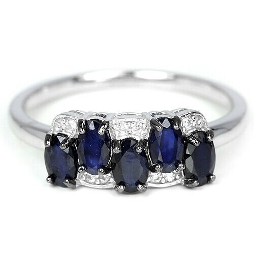 Beautiful classic ring with 5 blue sapphires & white cubic zirconia set in 925 sterling silver 585 white gold plated