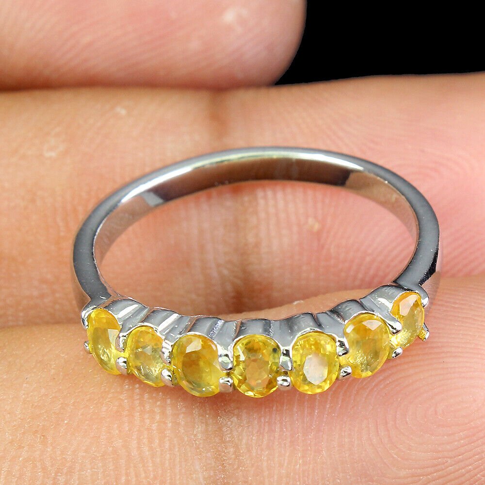 Very noble ring with 7 yellow Bangkaja sapphires set in 925 sterling silver 585 white gold plated