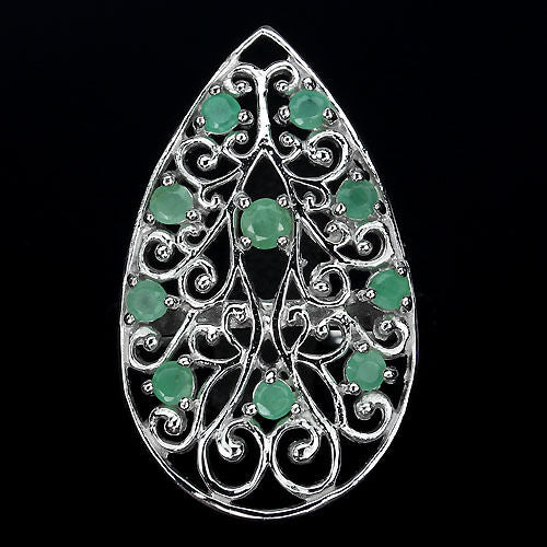 Great ring with 10 african emeralds set in 925 sterling silver 585 white gold plated