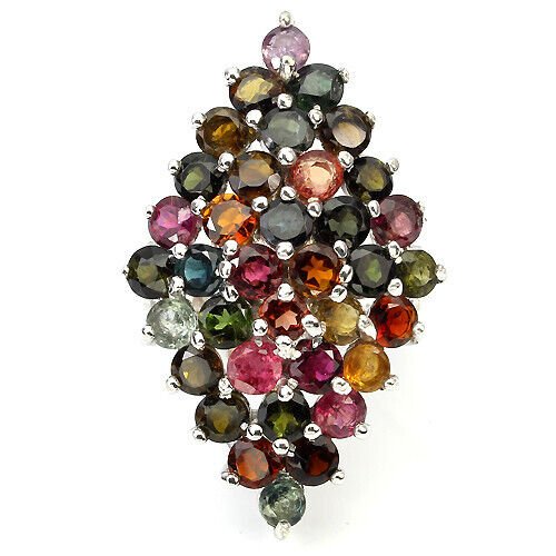 Beautiful large ring with 36 tourmalines in different natural colors set in 925 sterling silver 585 white gold plated