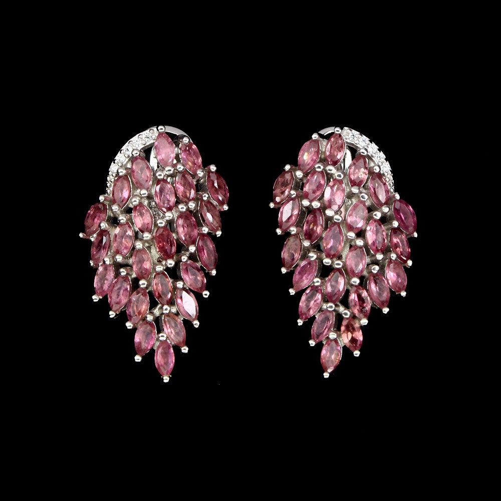Earrings with a total of 50 pink tourmalines & white cubic zirconia set in 925 sterling silver and 14 carat white gold plated
