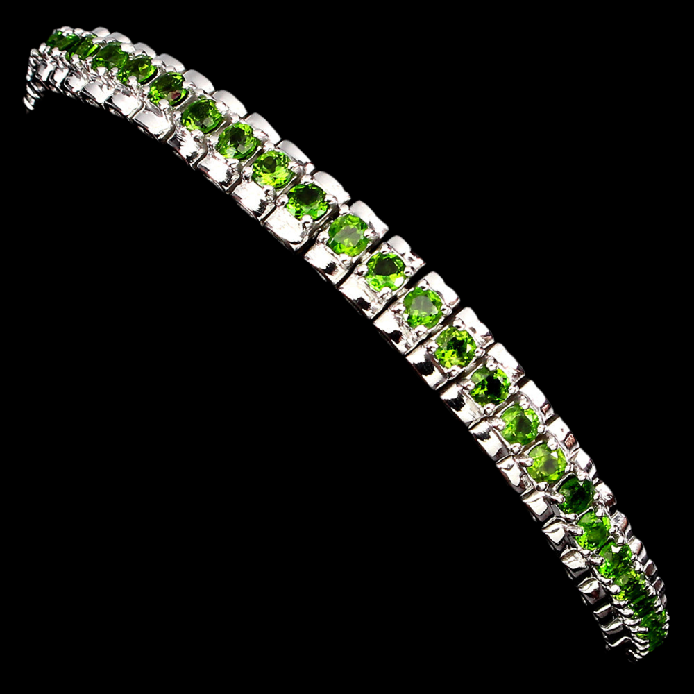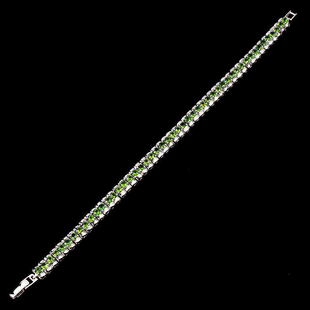 Bracelet with Russian diopsides (chrome diopsides) set in 925 sterling silver 14 carat white gold plated