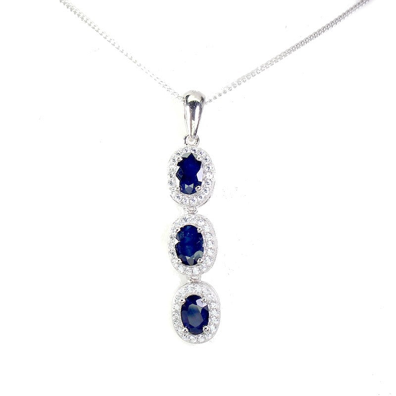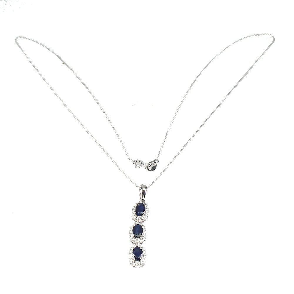 Necklace with pendant with blue sapphires & white zirconia set in 925 sterling silver 14 carat white gold plated