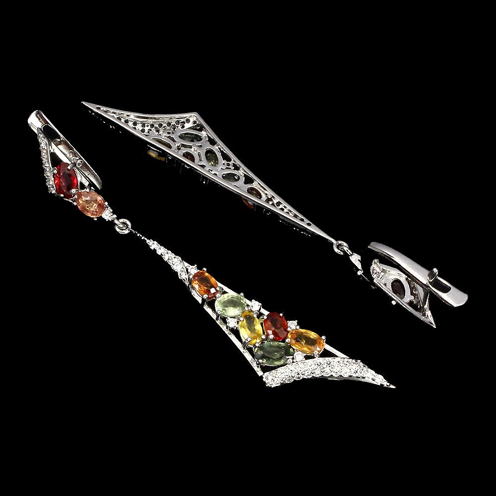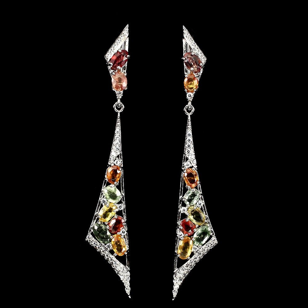 Earrings with sapphires in various colors & white zirconia set in 925 sterling silver 14 carat white gold plated