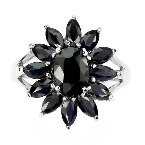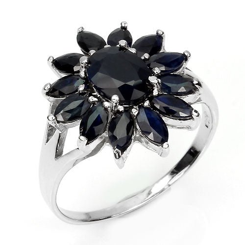 Ring with 13 black-blue sapphires set in 925 sterling silver 585 white gold-plated
