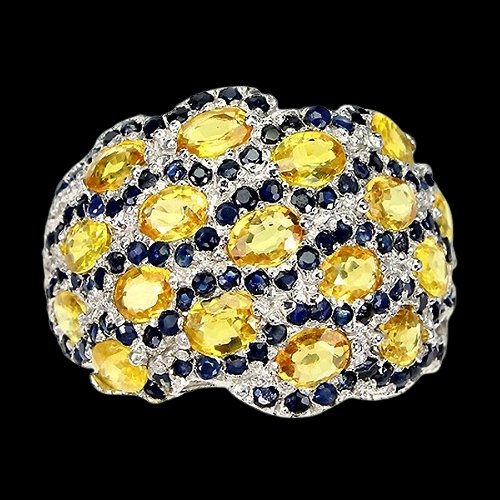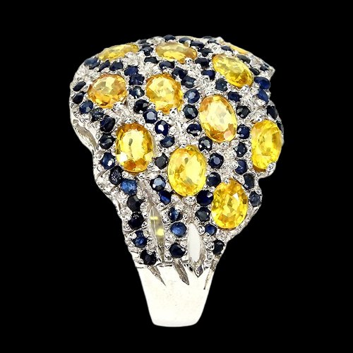 Ring with yellow and blue sapphires set in 925 sterling silver 585 white gold plated