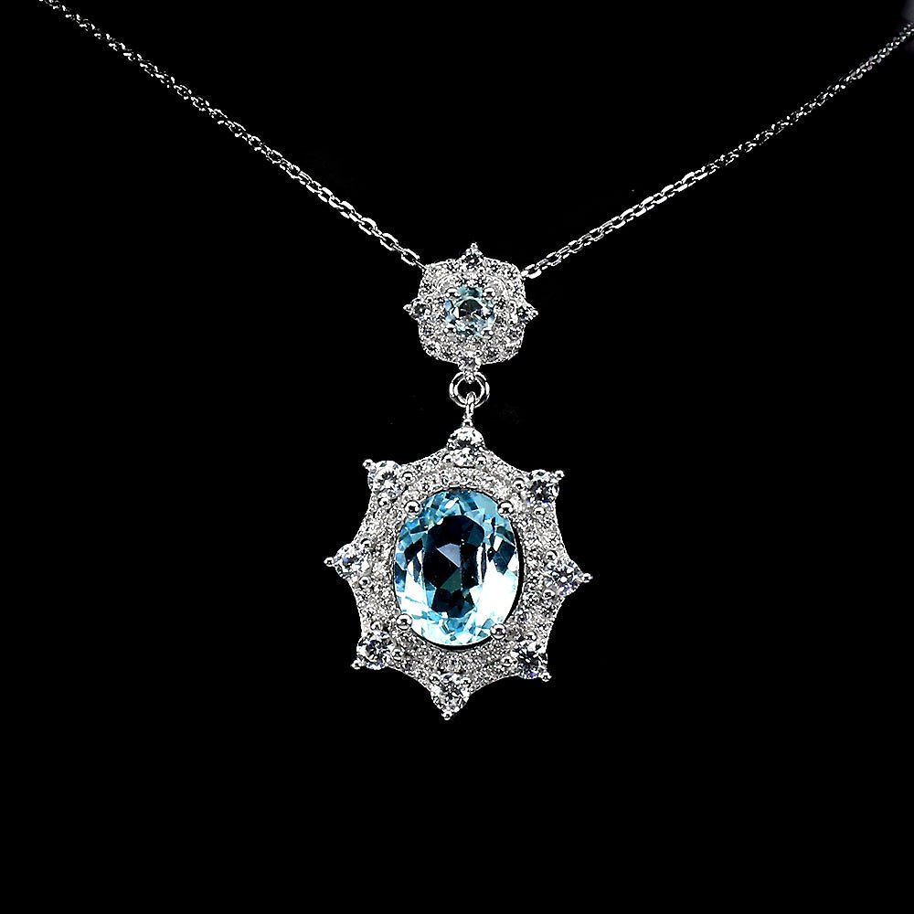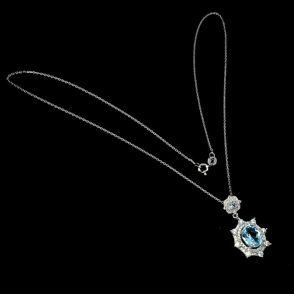 Necklace with pendant with sky blue blue topaz & white cubic zirconia set in 925 sterling silver and 14k white gold plated