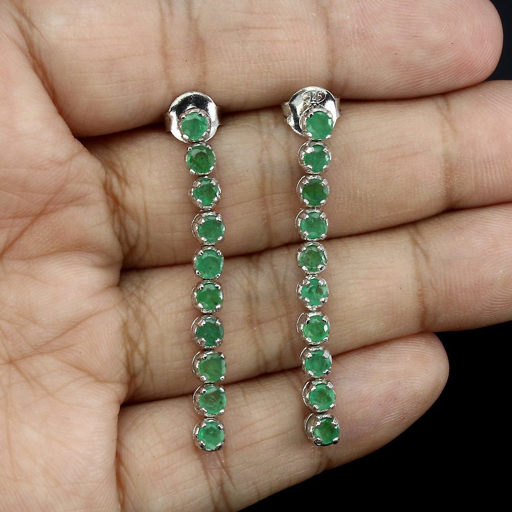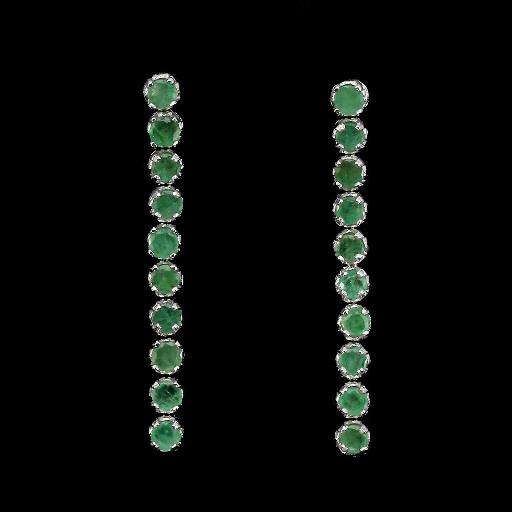 Earrings with emeralds set in 925 sterling silver 14k white gold plated