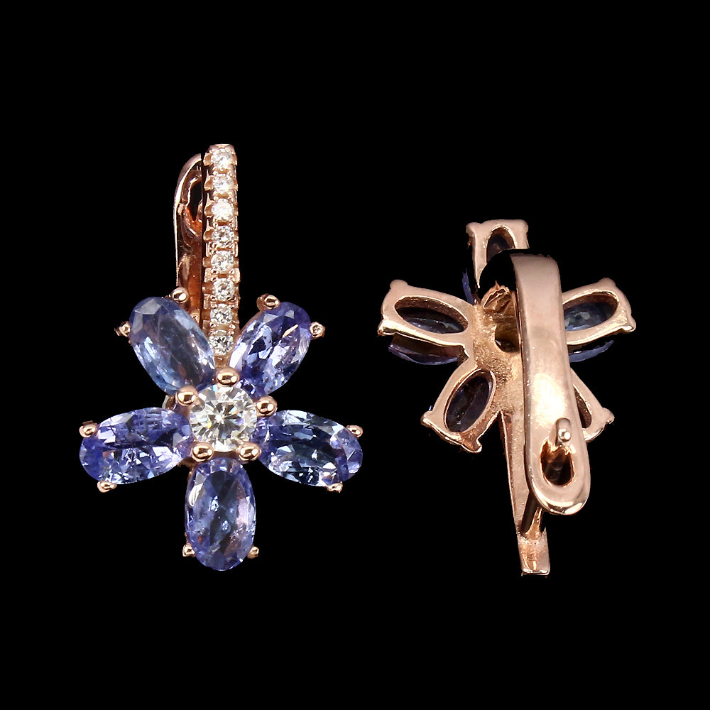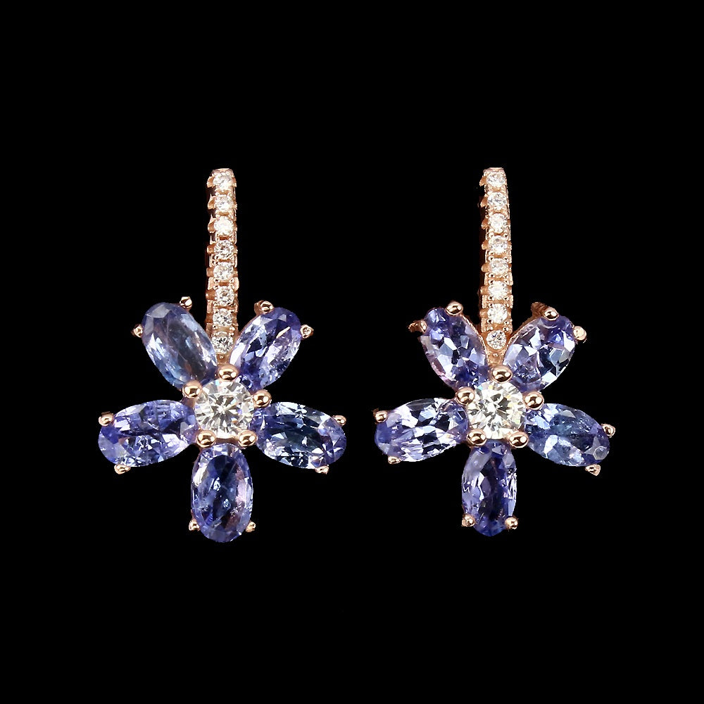 Earrings with tanzanites & white zirconia set in 925 sterling silver 14 carat rose gold plated