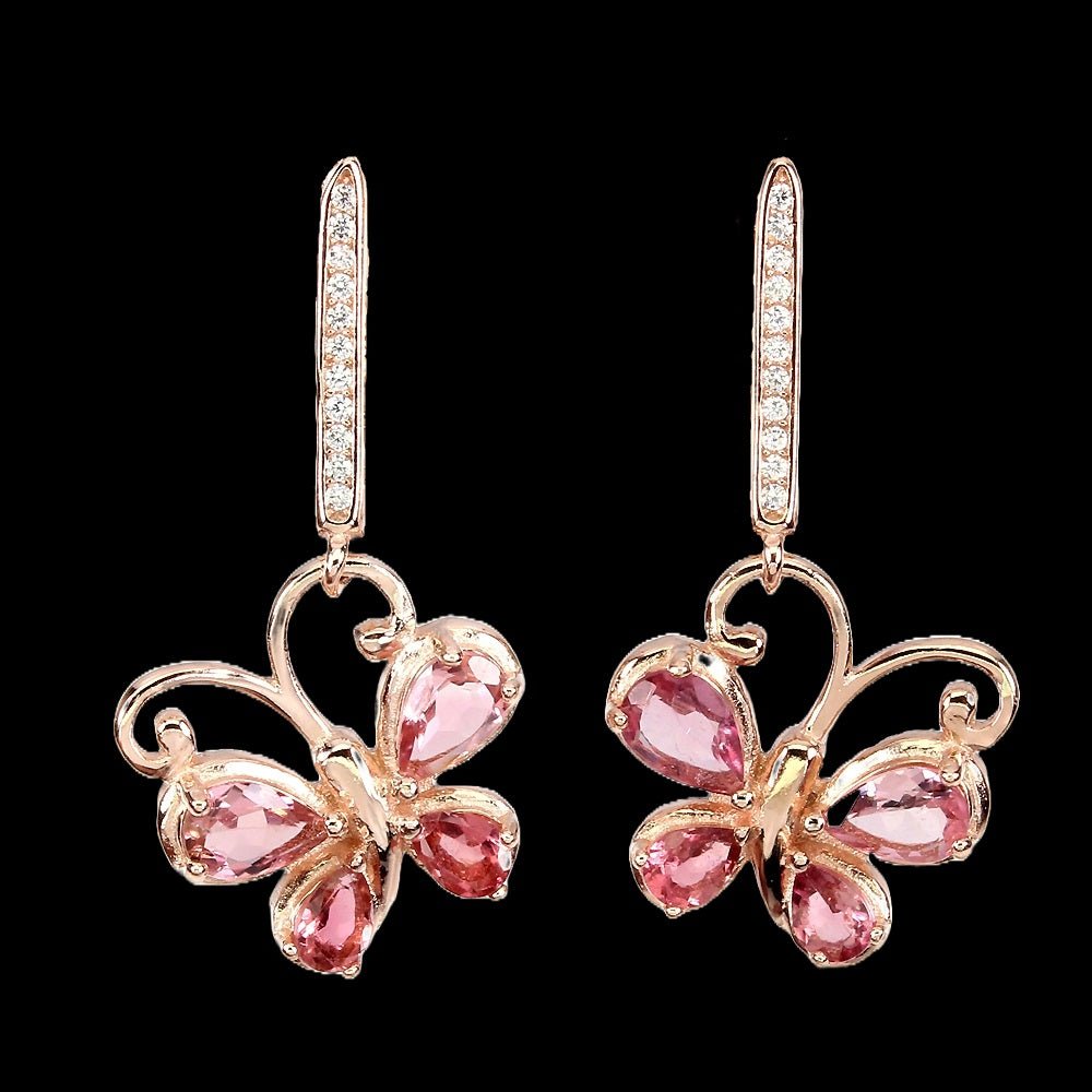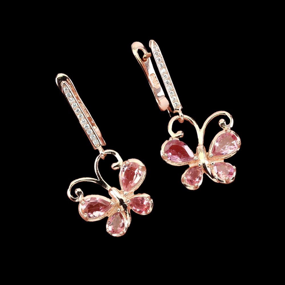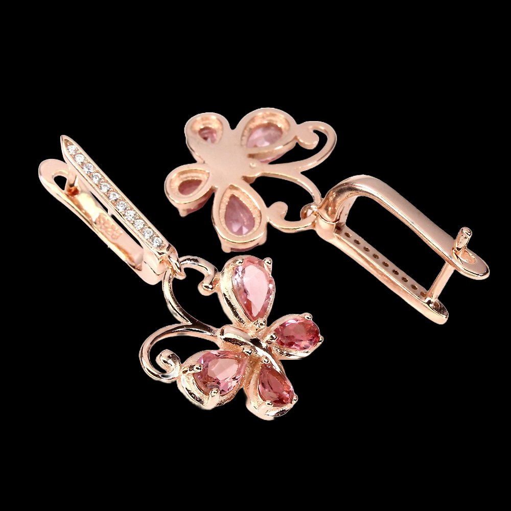 Butterfly earrings with pink tourmalines set in 925 sterling silver 14 carat rose gold plated