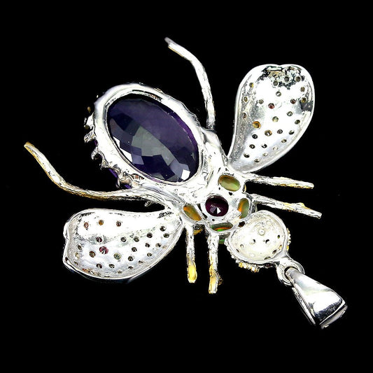Colgante abeja rodolita zafiro ópalo amatista