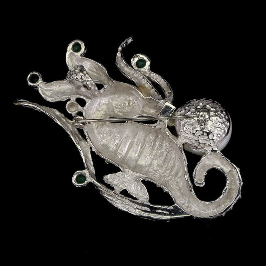 Broche colgante caballito de mar perla zafiro esmeralda