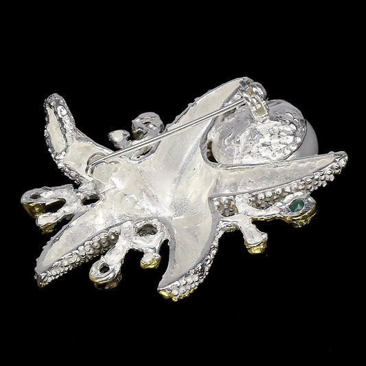 Broche con colgante de estrella de mar y perla de zafiro esmeralda