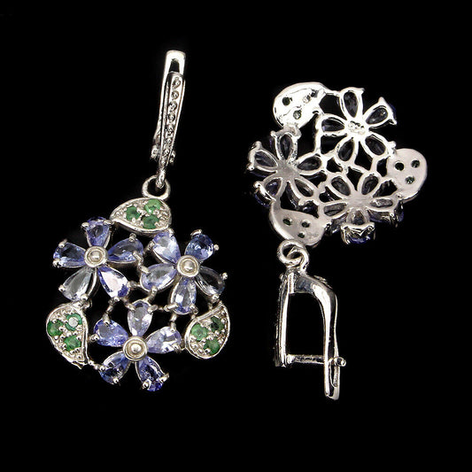 Pendientes tanzanita rodolita diópsido de Rusia esmeralda