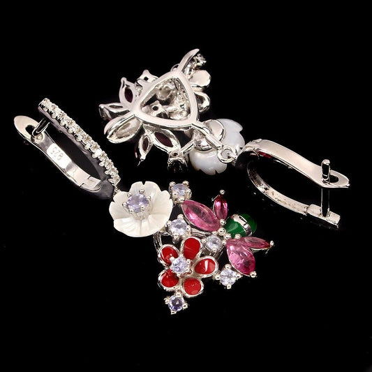 Pendientes rodolita aguamarina tanzanita diópsido de Rusia