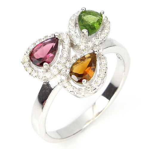 Anillo aficionado turmalina diópsido de Rusia talla 53