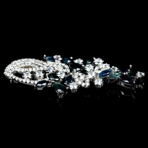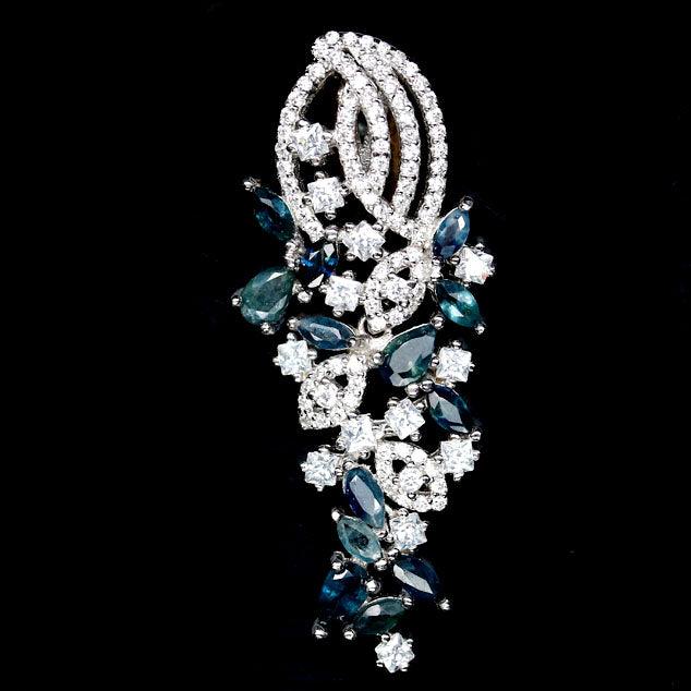 Colgante con zafiros azules y circonitas blancas engastados en plata de ley 925 bañada en oro blanco de 14 quilates