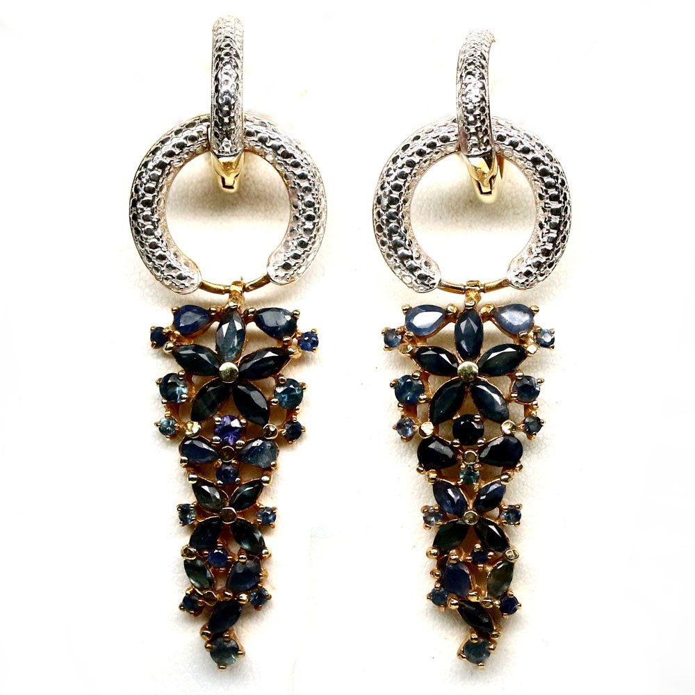 Pendientes Glamorous con zafiros azules engastados en plata de ley 925 bañada en oro blanco y amarillo de 14 quilates