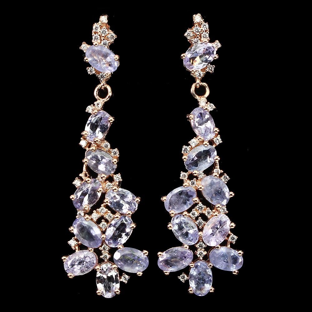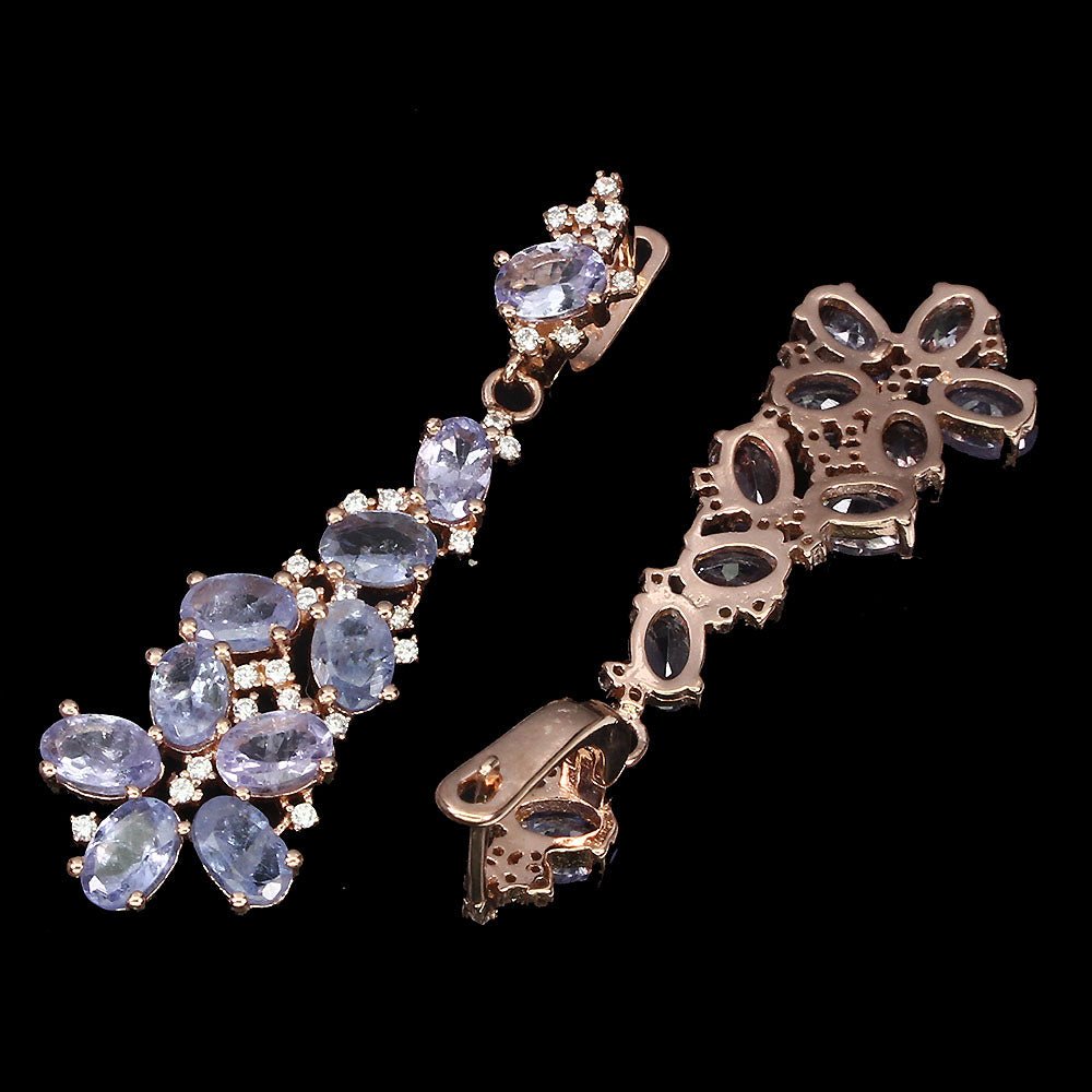 Pendientes con tanzanitas y circonitas blancas engastadas en plata de primera ley 925 y baño de oro rosa de 14 quilates