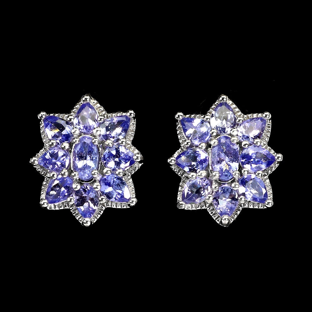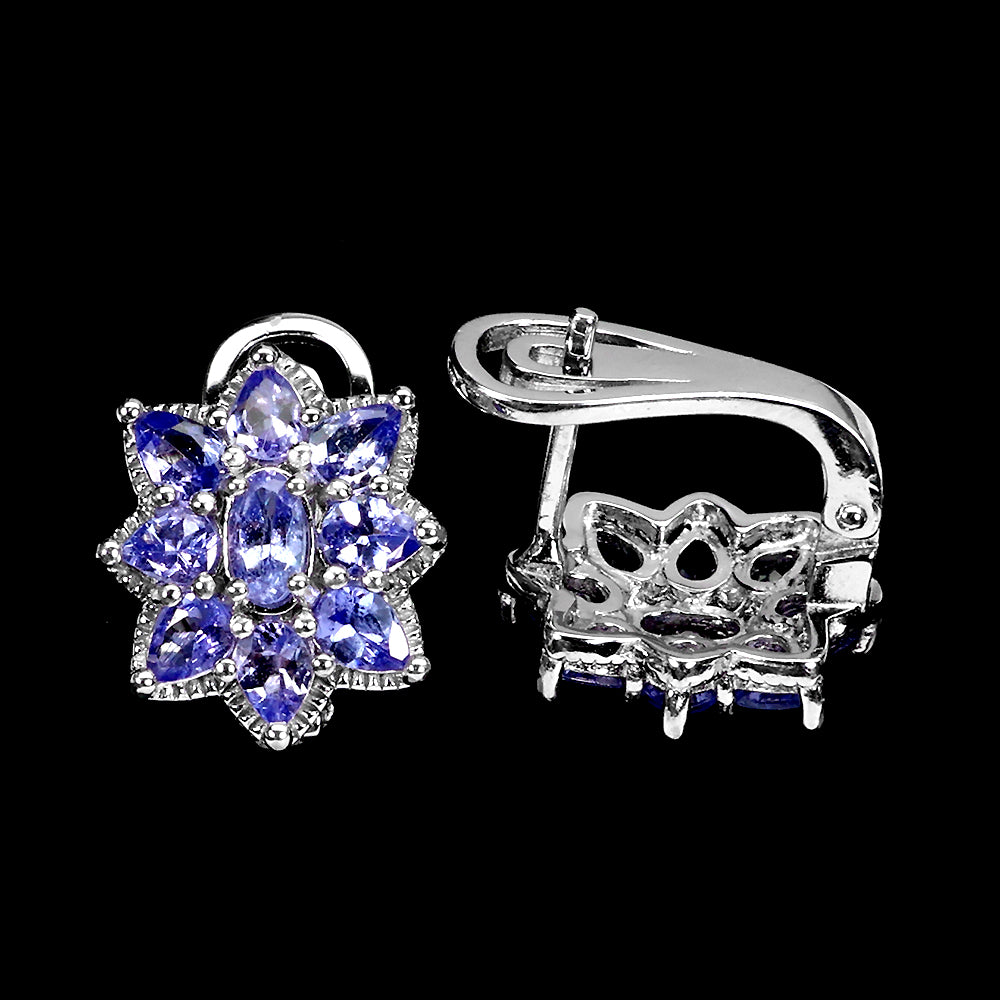 Pendientes con tanzanitas engastadas en plata de ley 925 bañada en oro blanco de 14 quilates