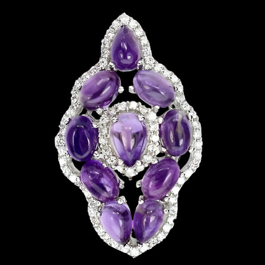 Broche Fleur Améthyste Citrine Diopside de Russie