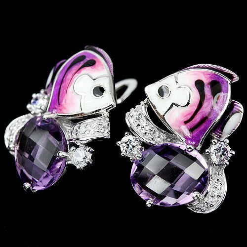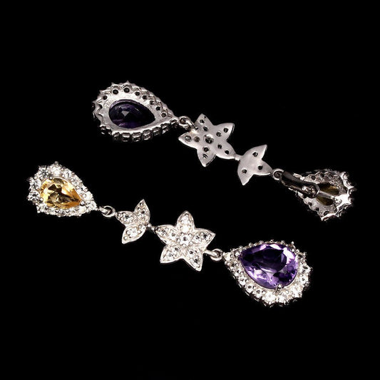 Boucles d'Oreilles Améthyste Citrine Topaze Blanche