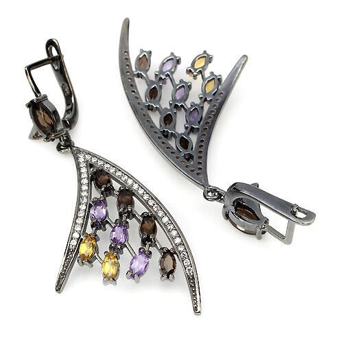 Boucles d'Oreilles Améthyste Citrine Quartz Fumé