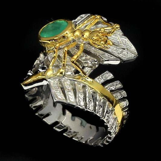 Bague Hippocampe Émeraude Quartz Fumé Taille 57