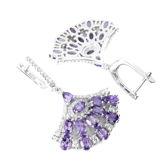 Boucles d'Oreilles Saphir Rhodolite Améthyste