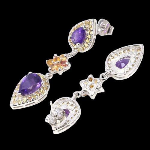 Boucles d'Oreilles Améthyste Citrine Péridot