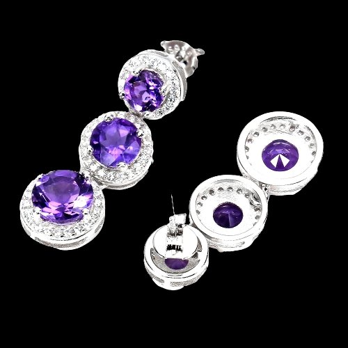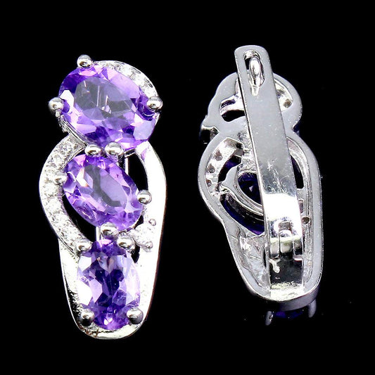 Boucles d'Oreilles Améthyste Diopside de Russie Tanzanite Saphir