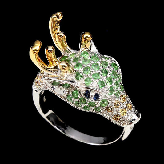 Bague Grand Chat Émeraude Rubis Diopside De Russie Taille 56