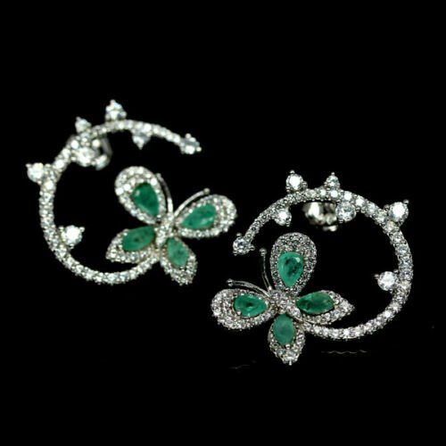 Boucles d'Oreilles Papillon Émeraude Rubis