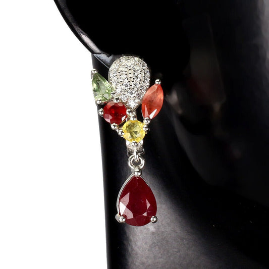 Boucles d'Oreilles Tourmaline Rubis Saphir