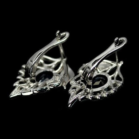 Boucles d'Oreilles Paon Saphir Topaze Bleu Ciel