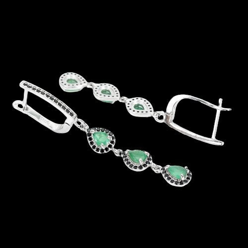 Boucles d'Oreilles Émeraude Tanzanite Perle
