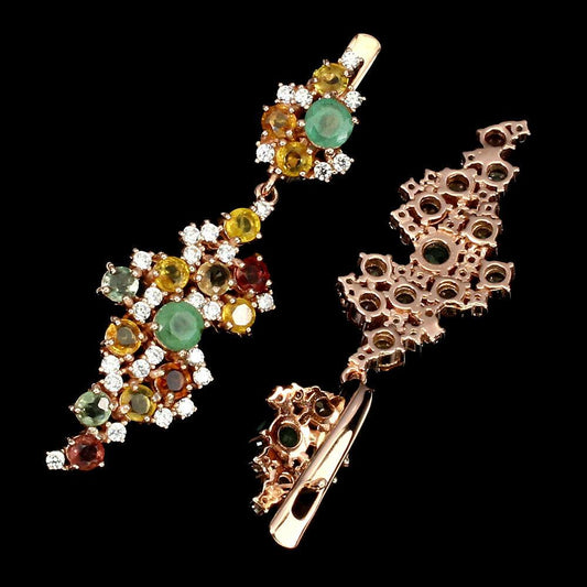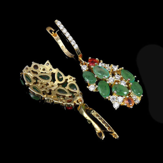 Boucles d'Oreilles Emeraude Améthyste Péridot