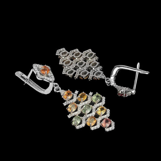Boucles d'Oreilles Rubis Diopside De Russie Topaze Bleue Citrine