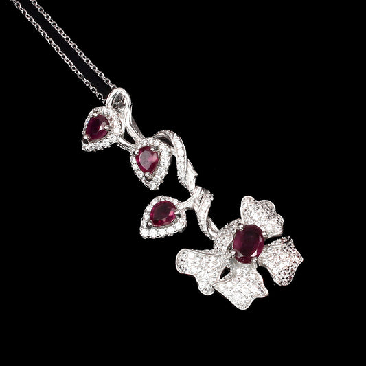 Pendentif Rubis Etoilé Topaze Blanche Avec Collier