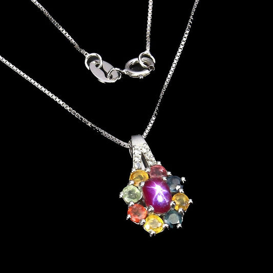 Pendentif Rubis Étoilé Saphir Topaze Blanche Avec Collier
