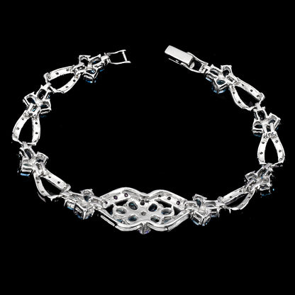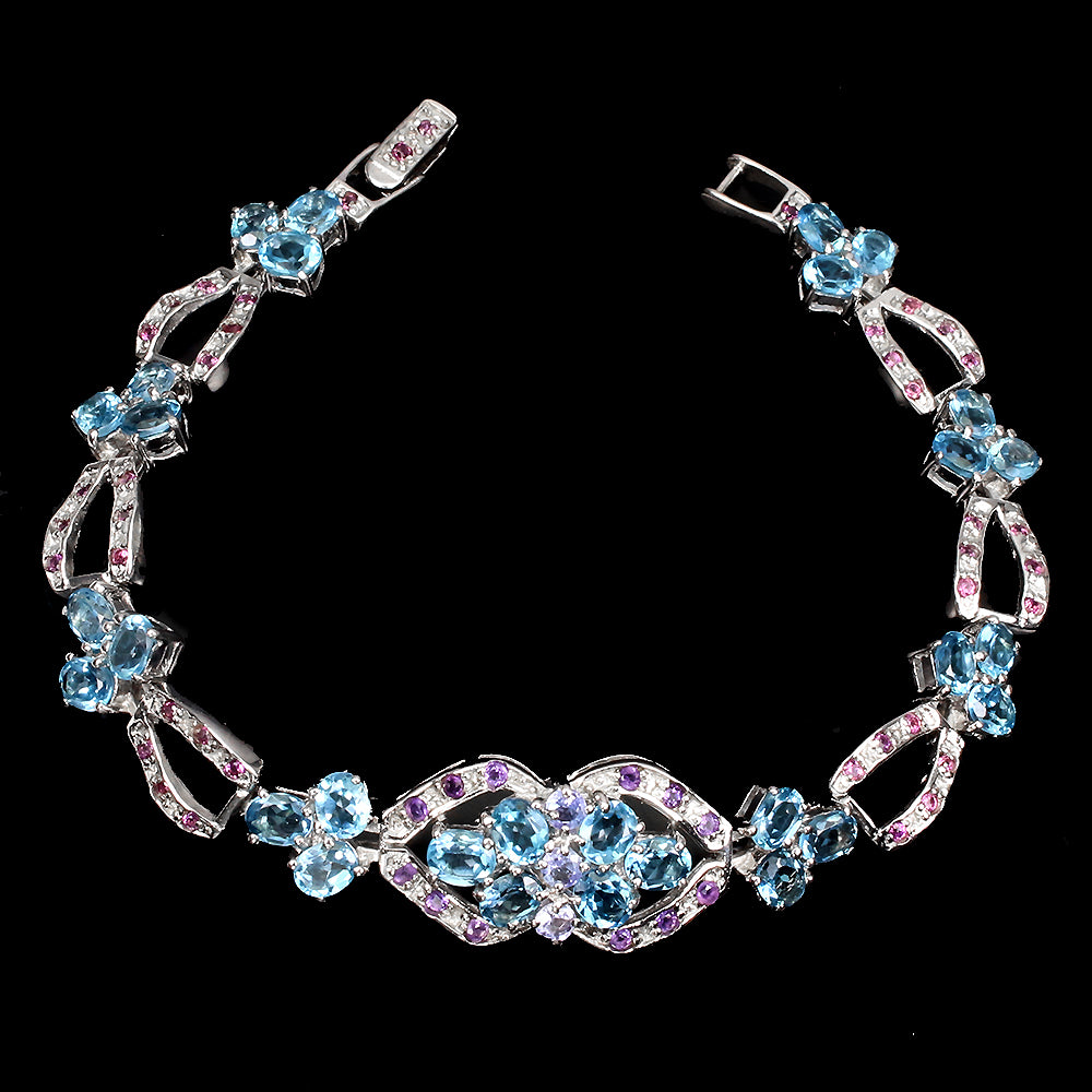 Bracelet avec topaze bleue de couleur bleu suisse, améthyste, rhodolite et tanzanite sertie sur argent sterling 925 plaqué or blanc 14 carats