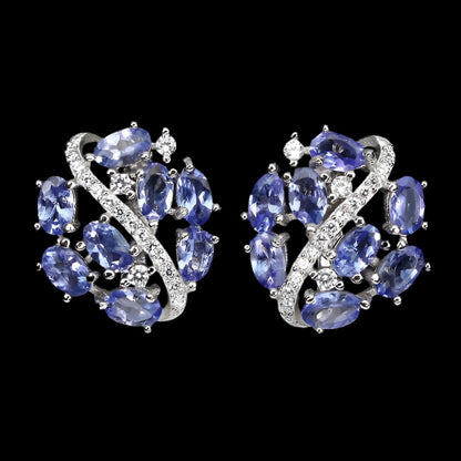 Boucles d'oreilles avec tanzanites et zircones blanches serties en argent sterling 925 plaqué or blanc 14 carats