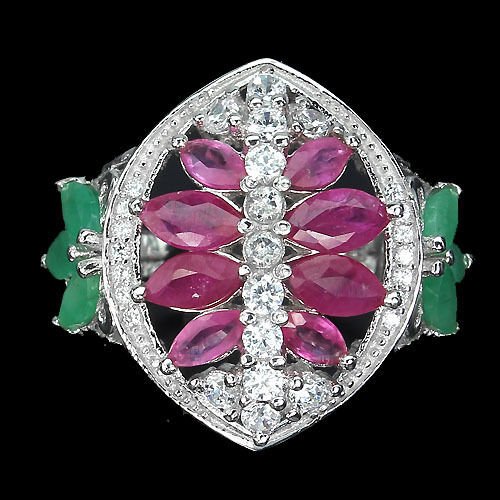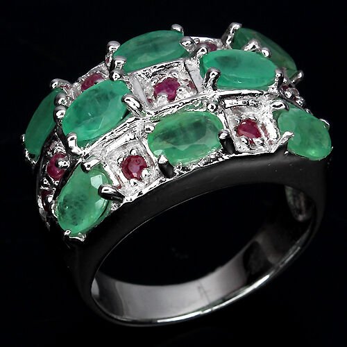 Anello smeraldo rubino prasiolite quarza rosa misura 49