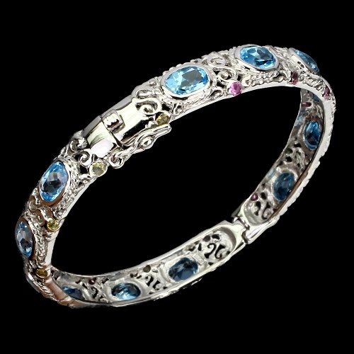 Bracciale rigido svizzero con tormalina blu con topazio azzurro 17 cm