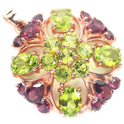 Spilla fiore opale peridoto citrino smeraldo rodolite