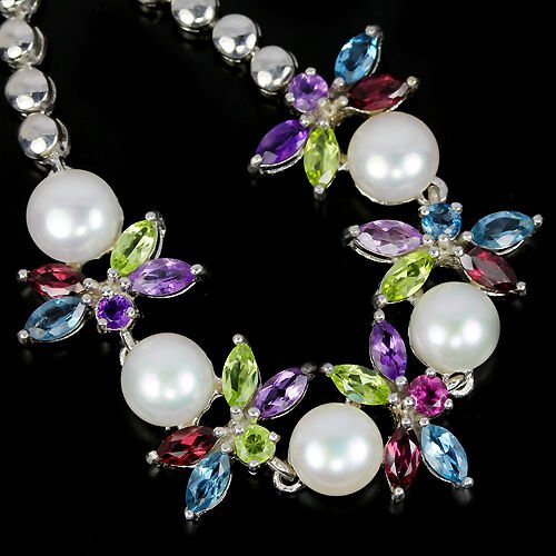 Bracciale perla rodolite topazio blu ametista peridoto
