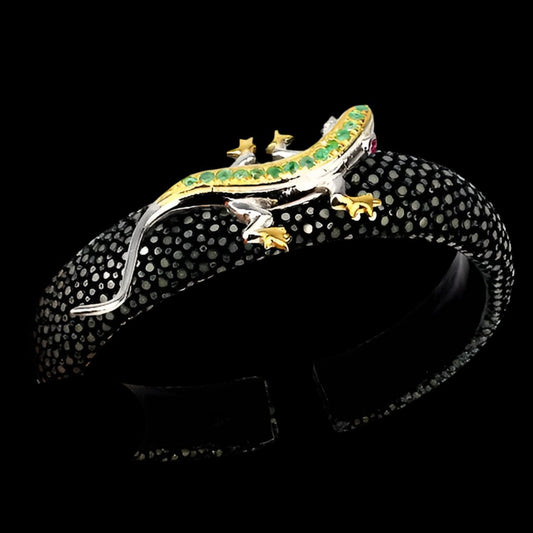 Bracciale rigido in pelle di razza smeraldo rubino 17 cm