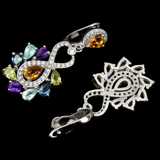 Orecchini peridoto topazio blu ametista citrino ametista