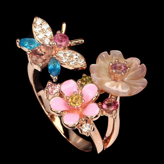 Anello farfalla tormalia apatite misura 55